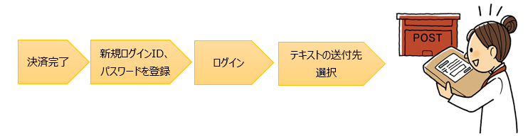 自動的に「自宅」に発送されます。また新規ログインID、パスワードの登録が未完了の場合、テキストは発送されませんのでご注意ください。