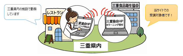 ※三重県以外の食品関連施設に勤務している方は当協会eラーニング方式講習会を受講できませんのでご注意願います。