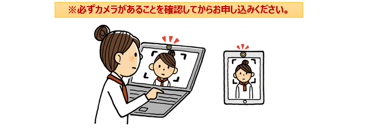 カメラ付きのパソコン、タブレットでなければ受講できませんのでご注意願います。